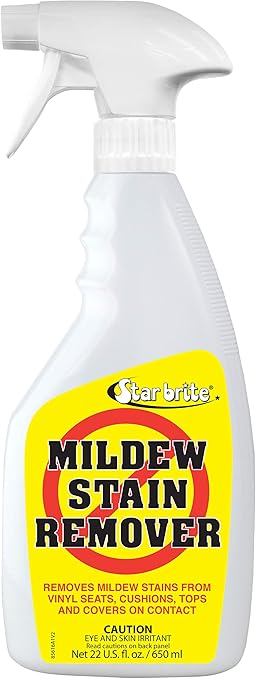This Starbrite Mildew Remover, suitable for canvas enclosures, fibreglass, and maritime upholstery, may be used.